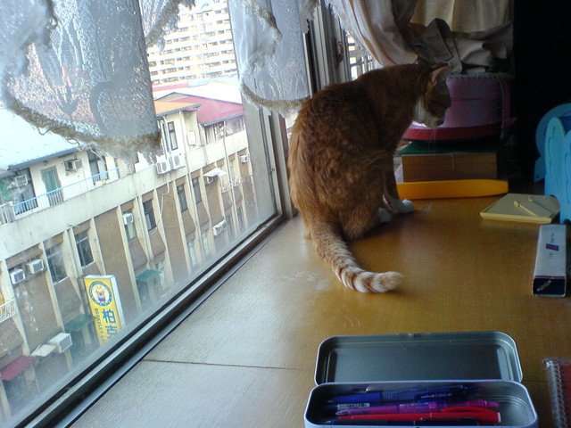 帶著鉛筆盒和課本,爬上了陽台,