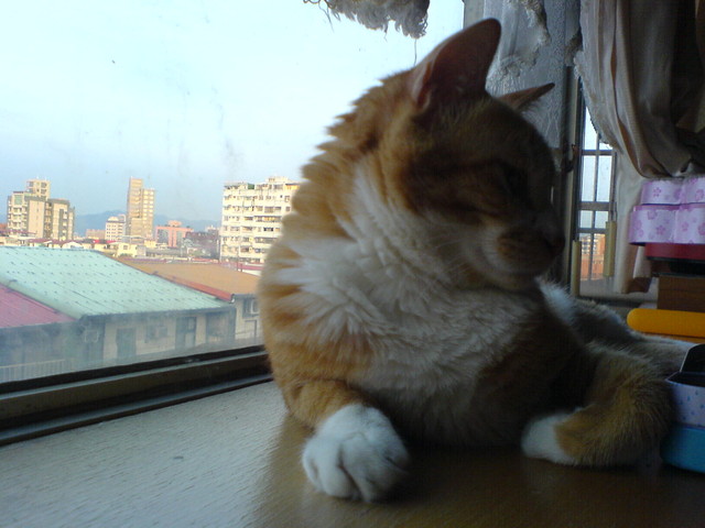 我愛趴在陽台上讀書。